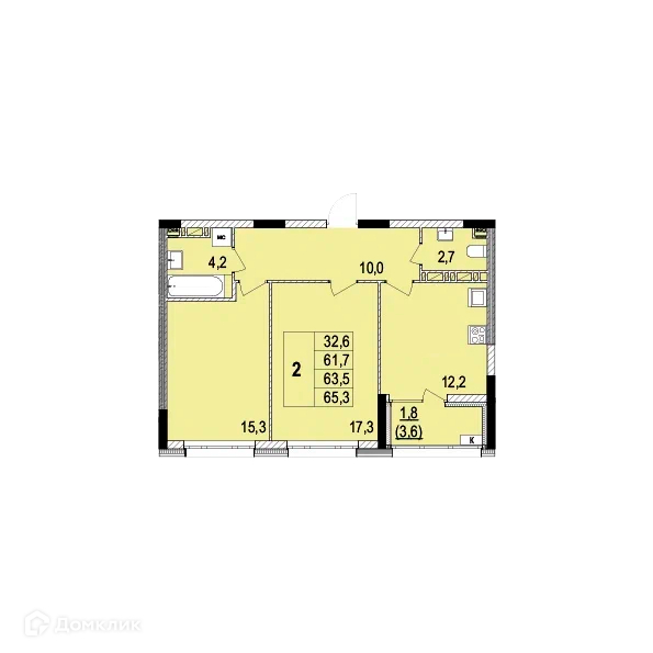 Планировка 2 комн. в ЖК Жилой дом на Лисицына