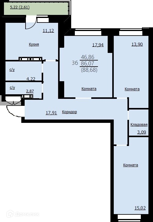 Планировка 3 комн. в ЖК Алые паруса