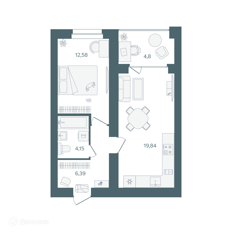 - Количество комнат: 1-комнатная квартира