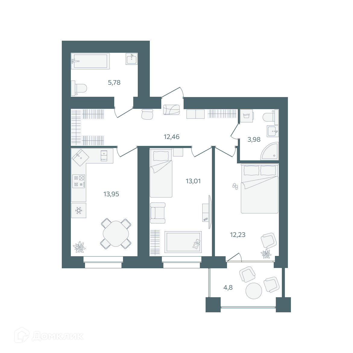 - Общая площадь: 63.81 м²
