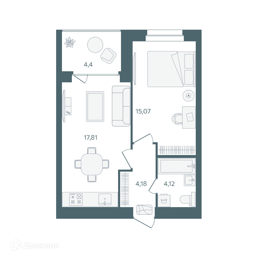 - Количество комнат: 1-комнатная квартира