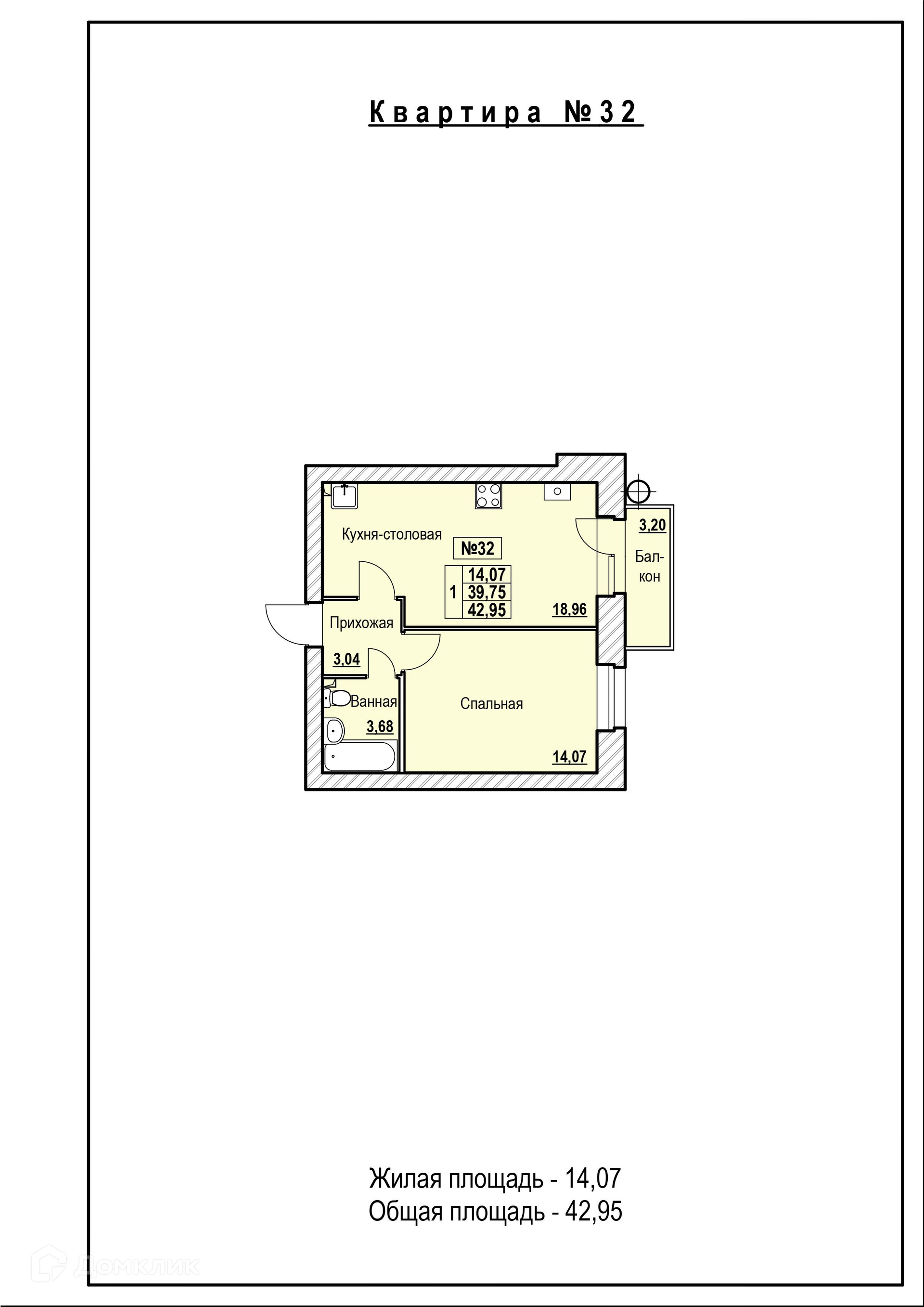Планировка 1 комн. в ЖК в городе Ярославль, шоссе Тутаевское, д. 93-а