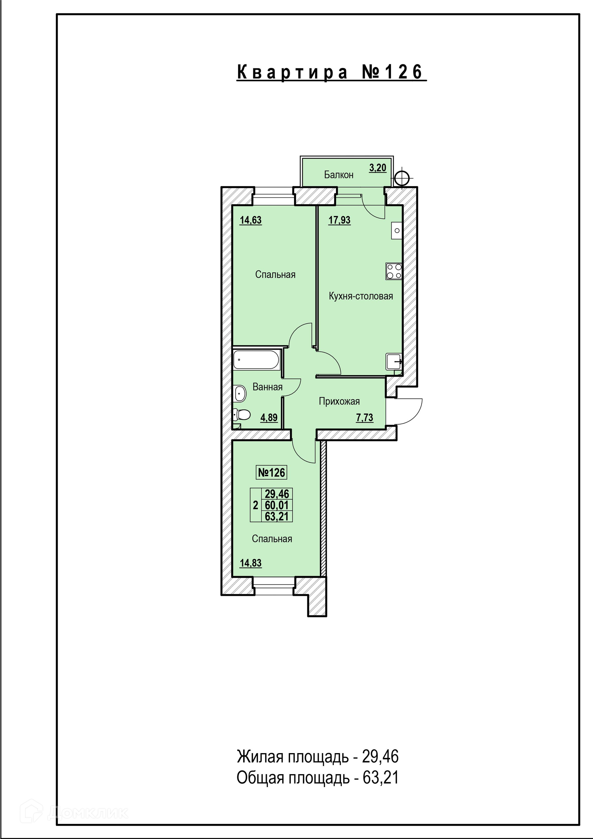 Планировка 2 комн. в ЖК в городе Ярославль, шоссе Тутаевское, д. 93-а