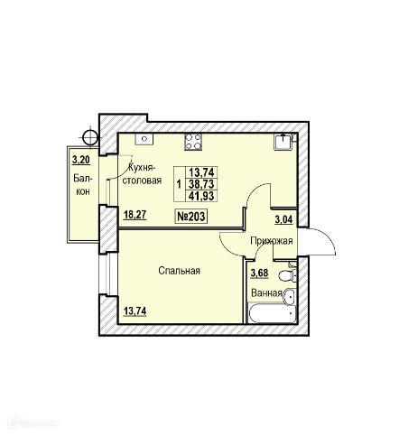 Планировка 2 комн. в ЖК в городе Ярославль, шоссе Тутаевское, д. 93-а