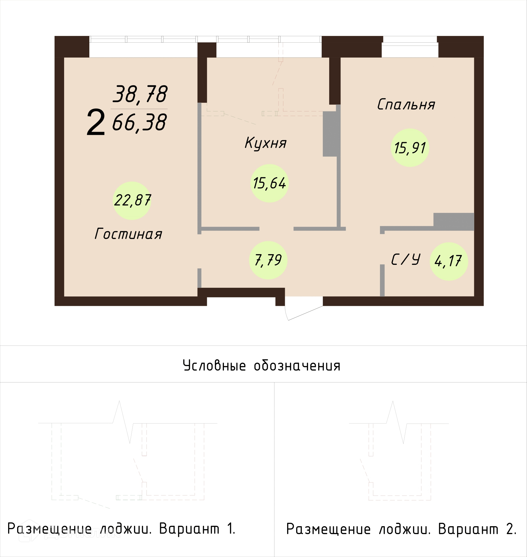 - ✅ Уютная жилая площадь: 38.78 м².