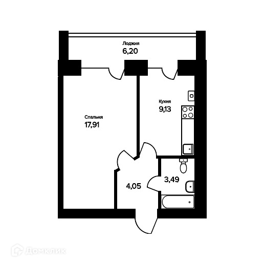 - Количество комнат: 1-комнатная квартира