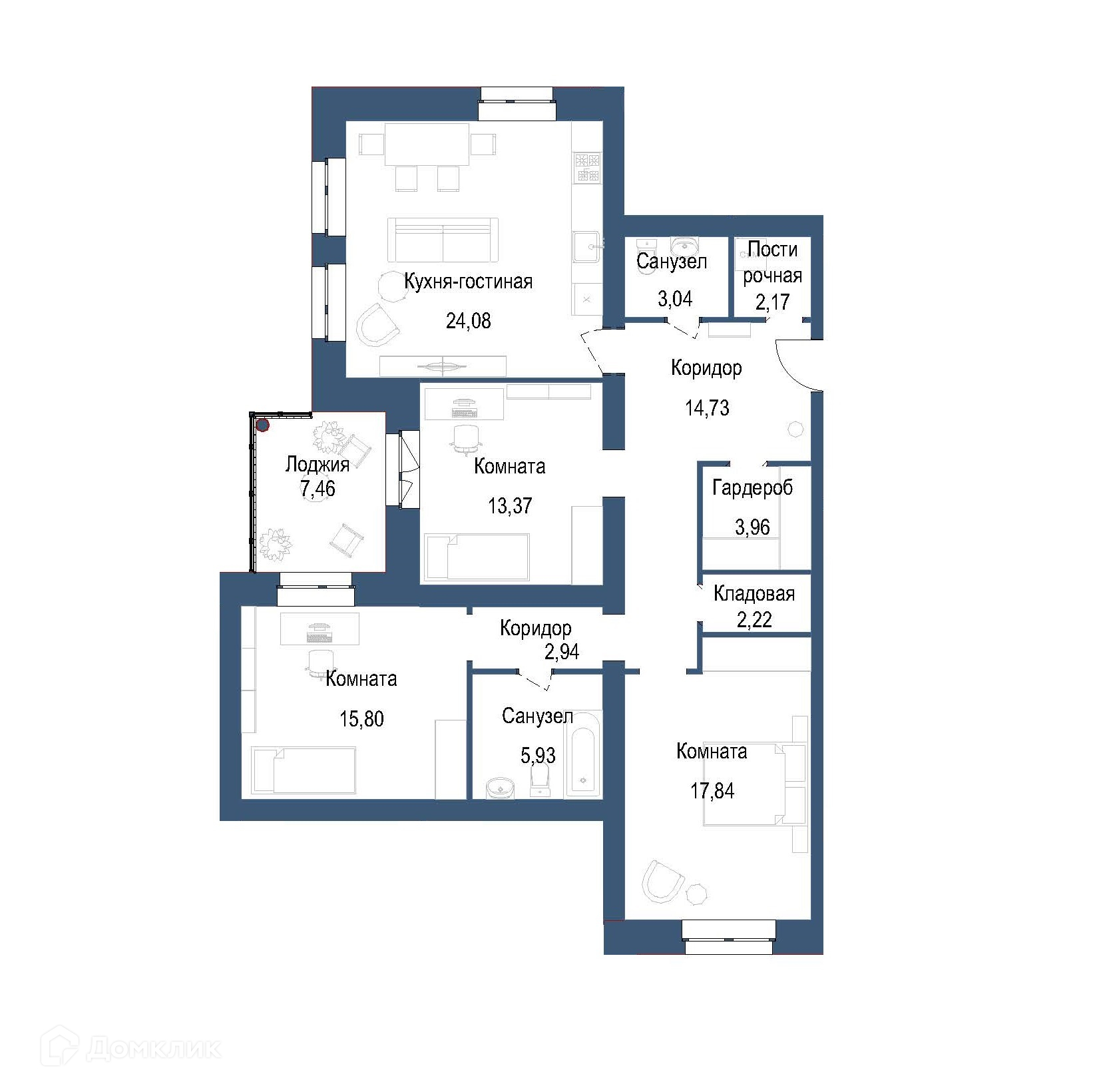 Планировка 3 комн. в ЖК на ул. Мамонтова