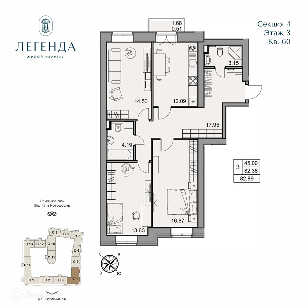 - Общая площадь: 82.89 м²