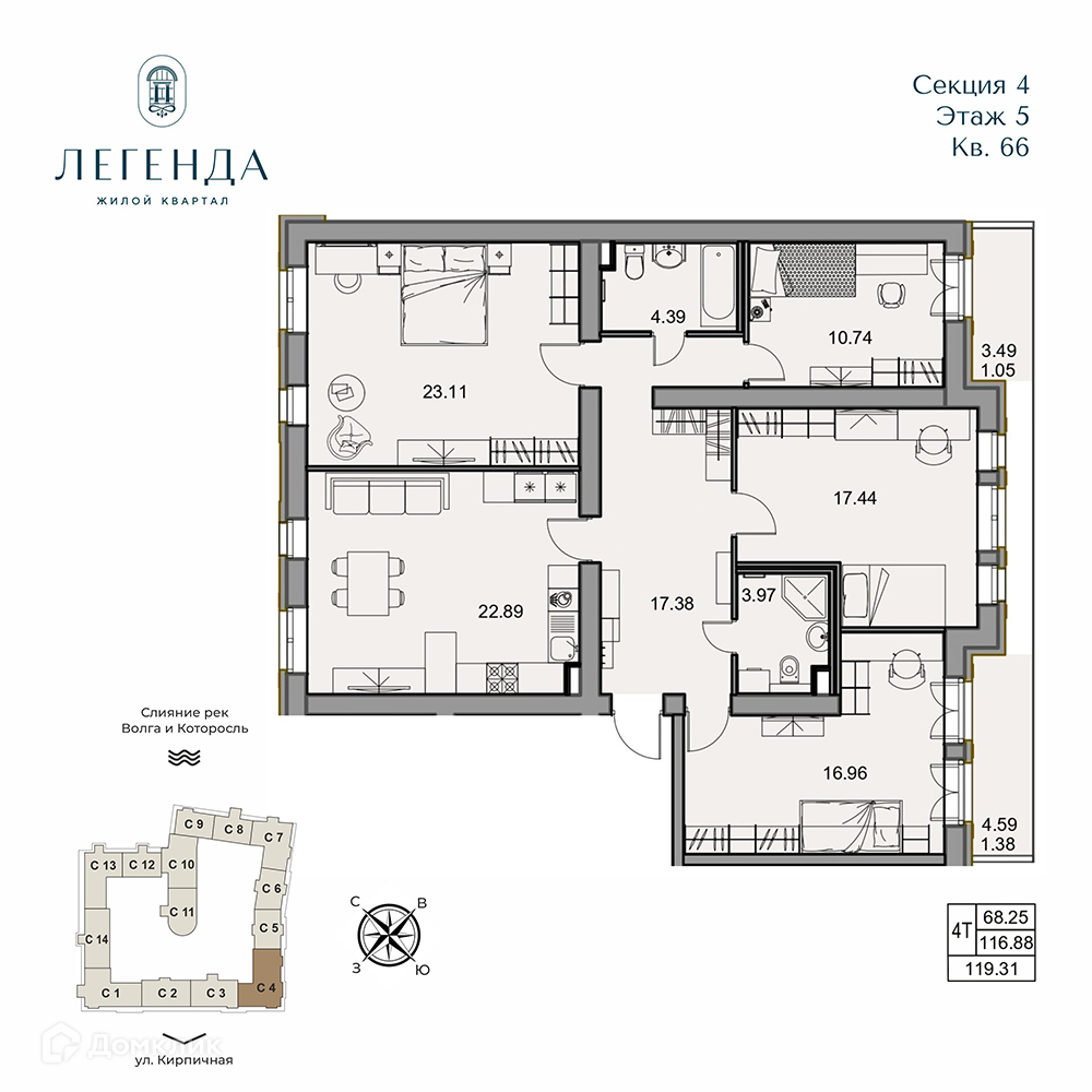 Доступна к покупке 4-комнатная квартира в востребованном жилом комплексе "ЖК Легенда" 🏢.