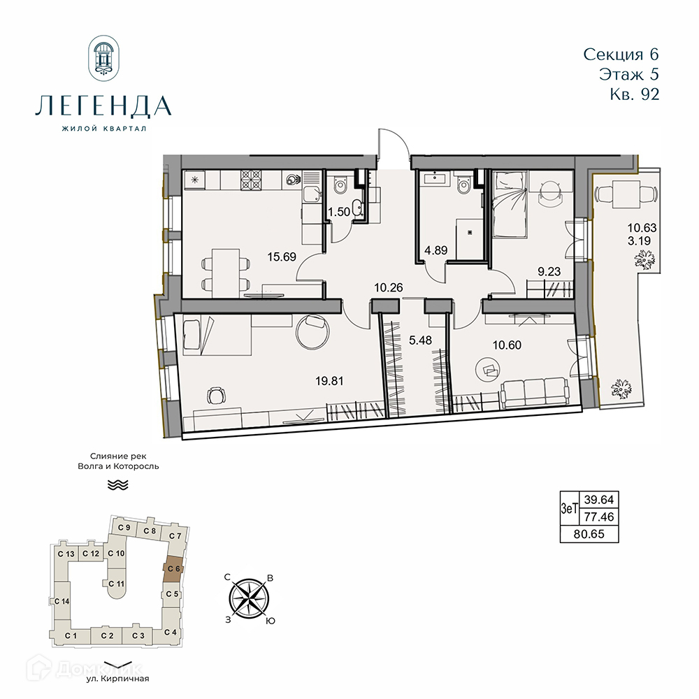 - Общая площадь: 80.65 м²