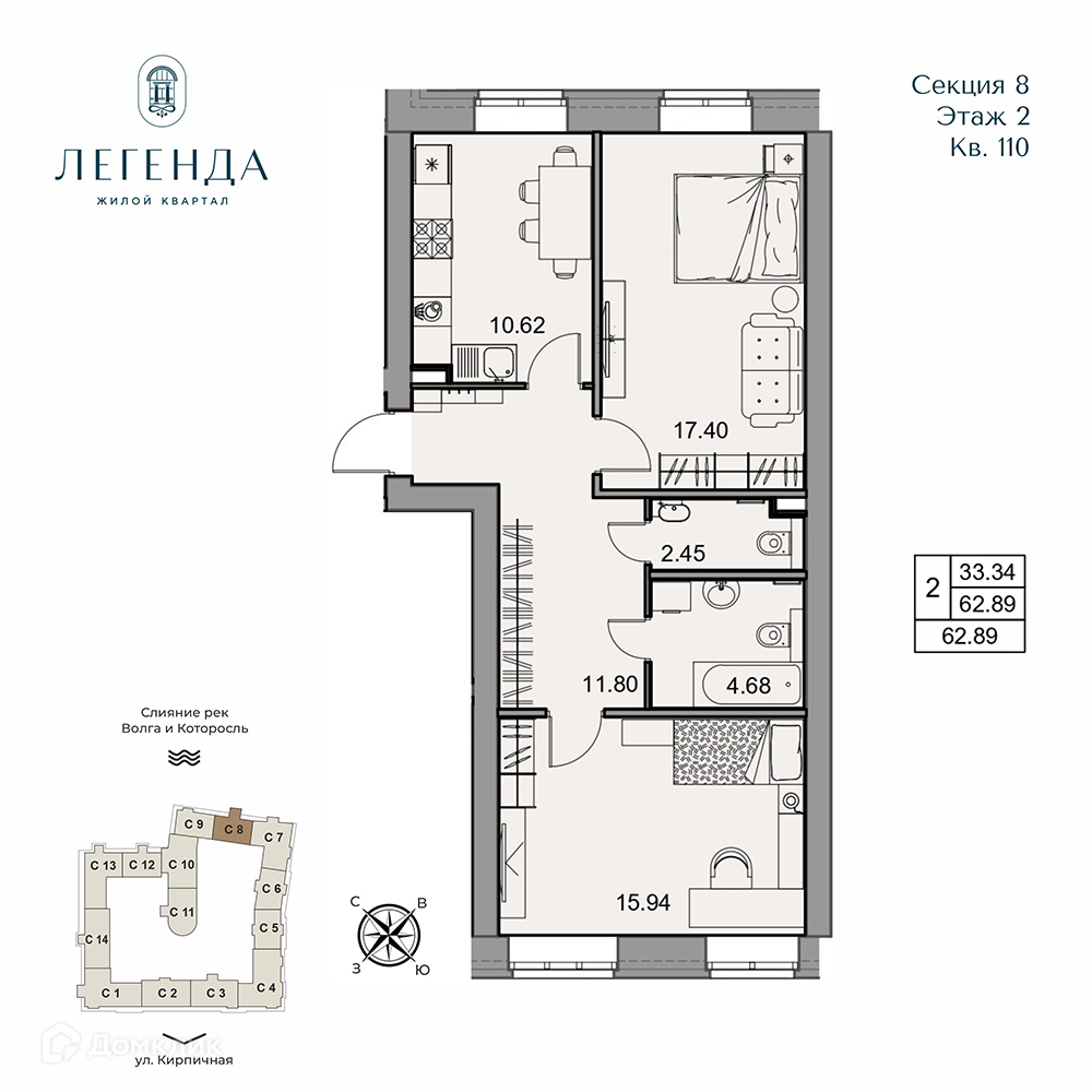 - ✅ Кухня: 10.62 м² — место для кулинарных шедевров.