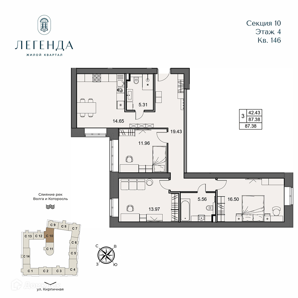 Планировка 3 комн. в ЖК Легенда