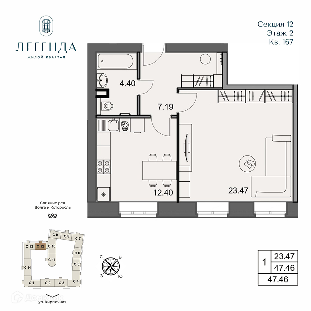 - ✅ Кухня: 12.4 м² — место для кулинарных шедевров.