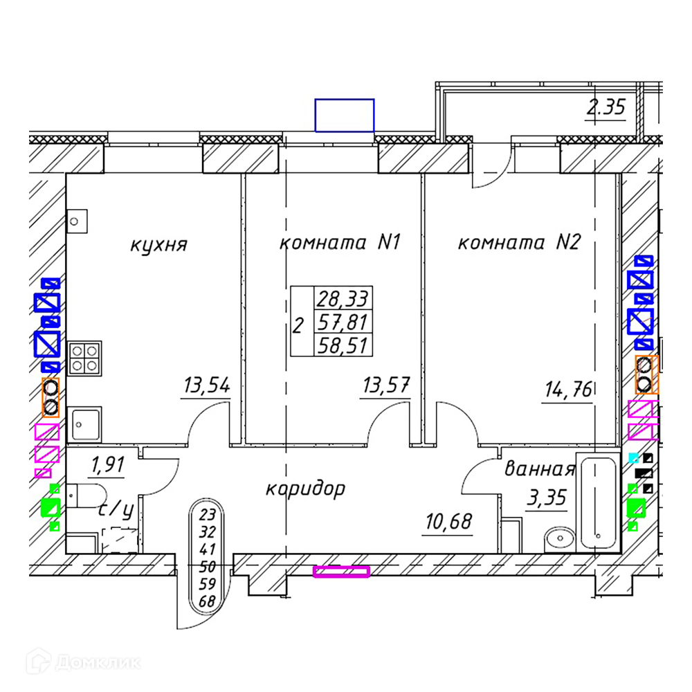58.51 - 69.1 м²