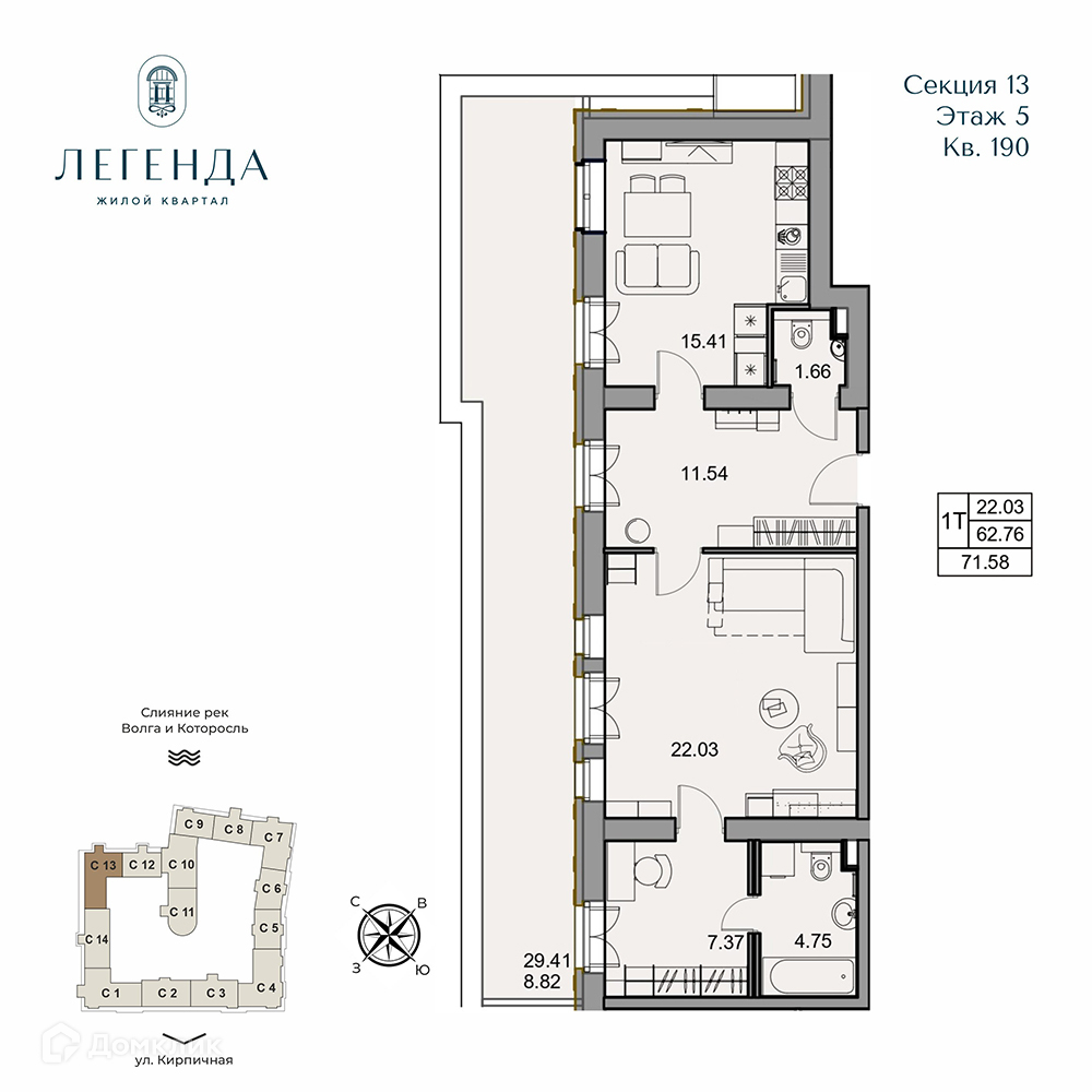- ✅ Уютная жилая площадь: 22.03 м².