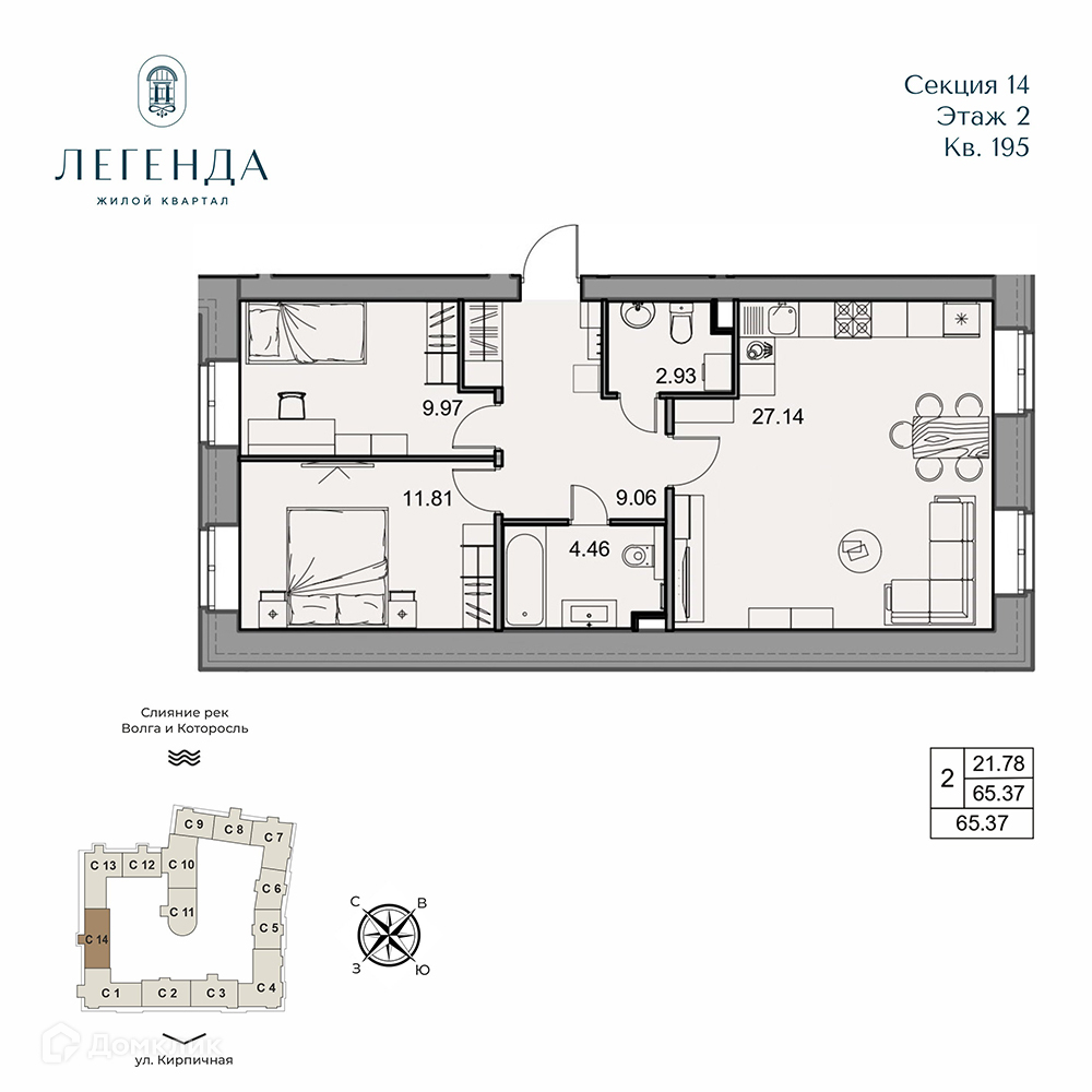 - ✅ Кухня: 27.14 м² — место для кулинарных шедевров.
