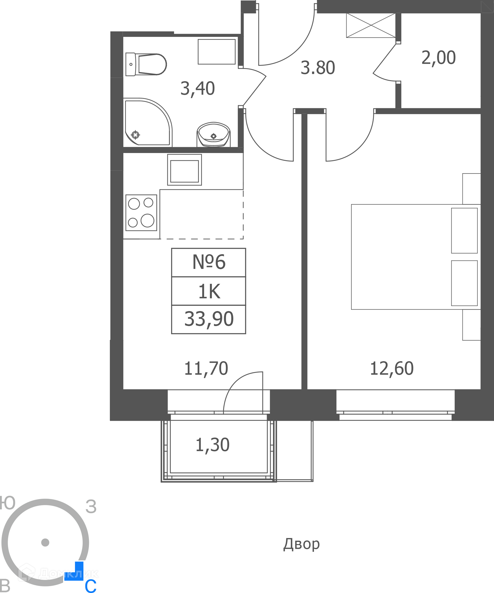 Планировка 1 комн. в ЖК ЭРА