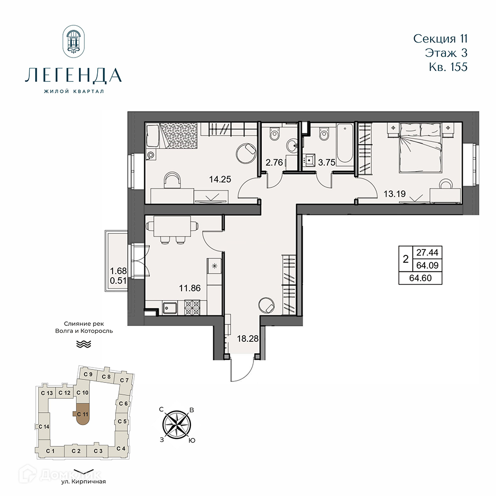 - ✅ Кухня: 11.86 м² — место для кулинарных шедевров.