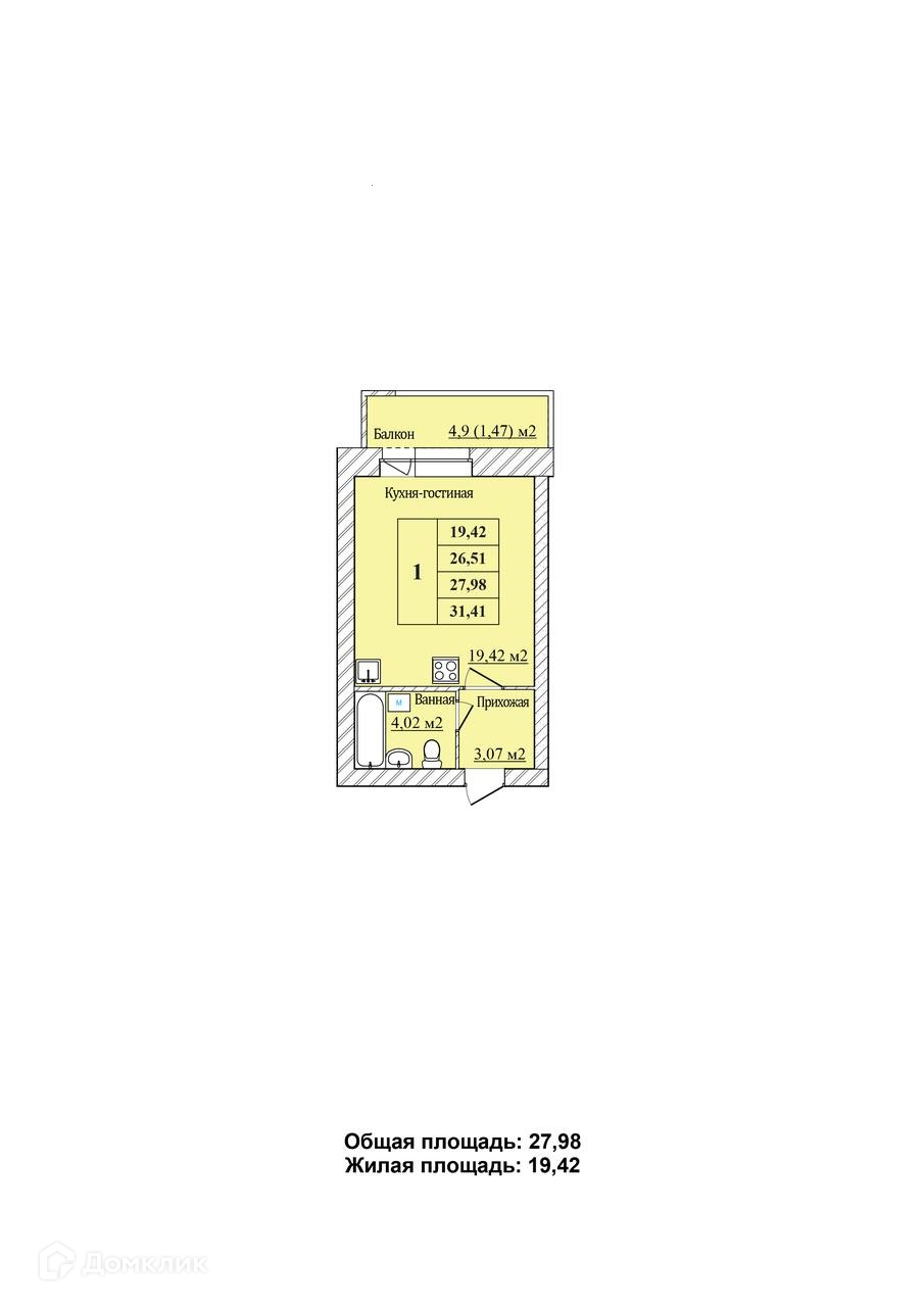 Планировка 1 комн. в ЖК ЖД На Минина