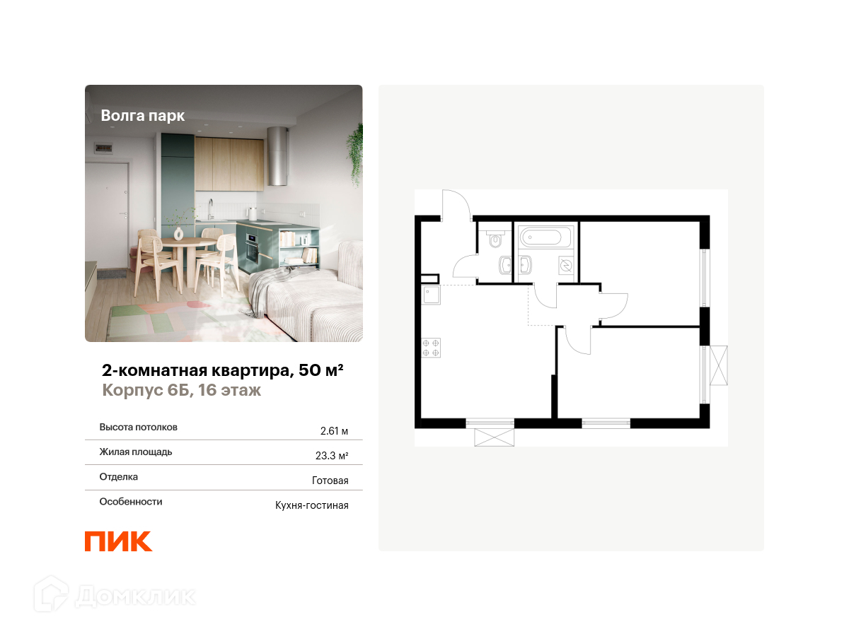 Планировка 2 комн. в ЖК Волга парк