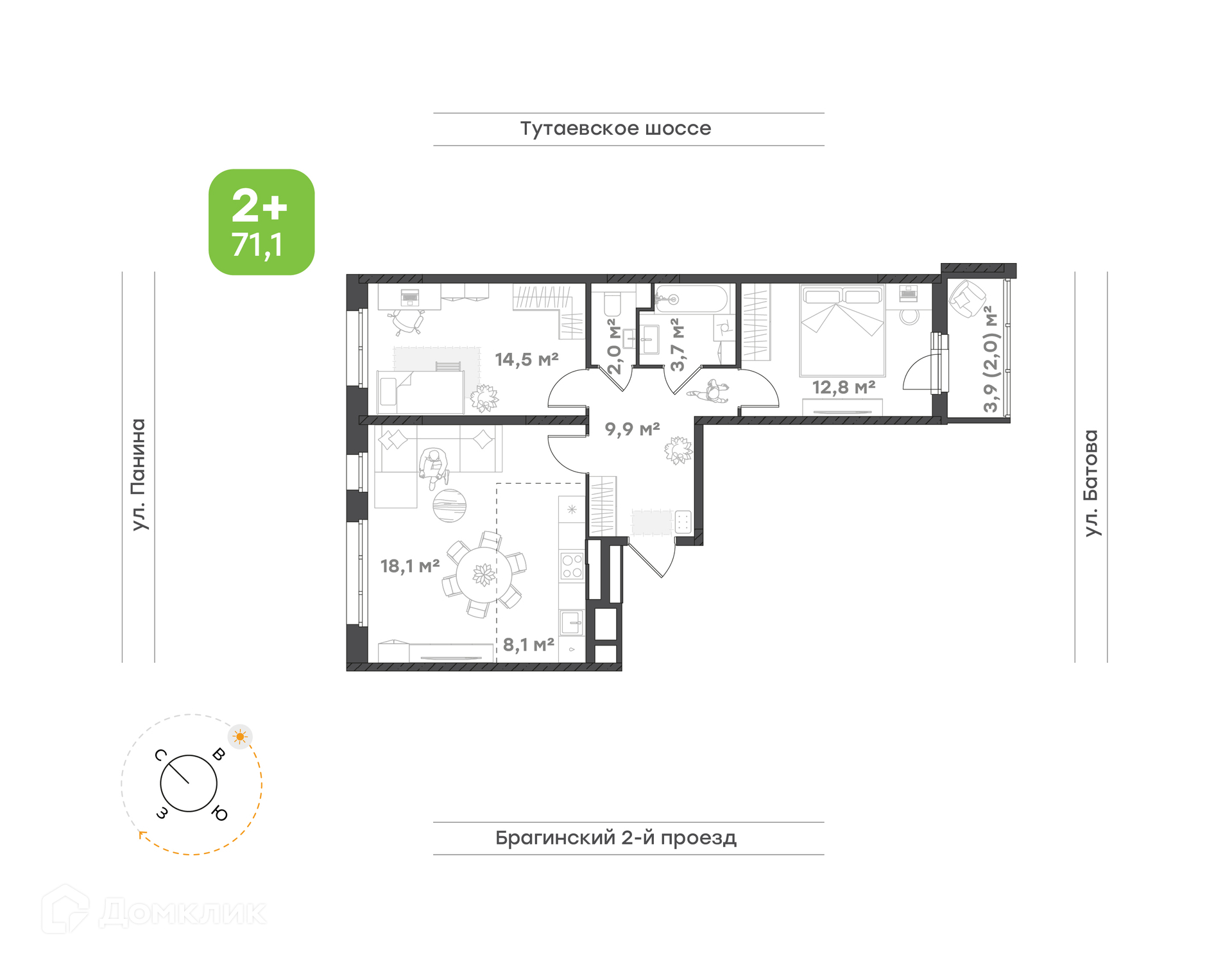 Планировка 2 комн. в ЖК "Новеллы"