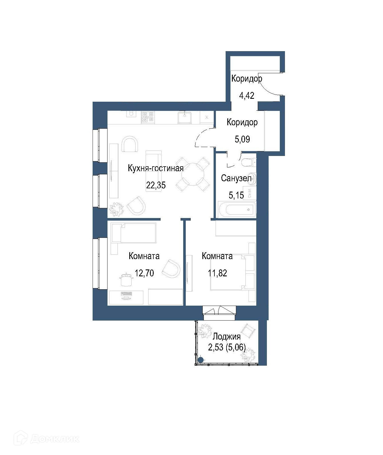 Планировка 2 комн. в ЖК на ул. Мамонтова